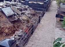 После того, как работа была проведена, клиент посчитал, что в задней части места захоронения требуется дополнительное укрепление. Мы вкрутили пять дополнительных свай, сварили новую сетку и залили ещё одну площадку, которая будет являться основанием для памятников.
